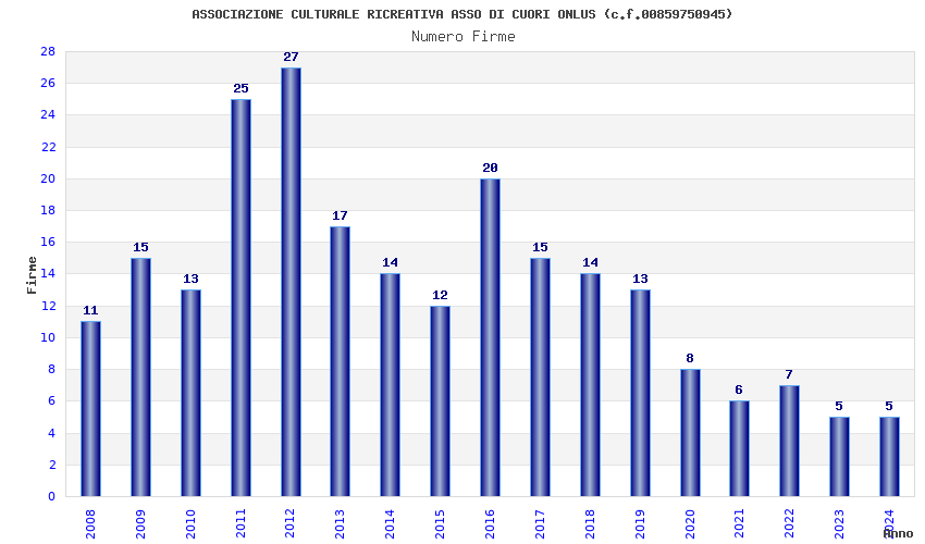 | Anno | Firme | Importi | Media | Naz. | Reg. | Prov. | Comu. |