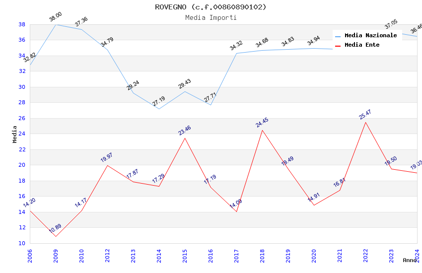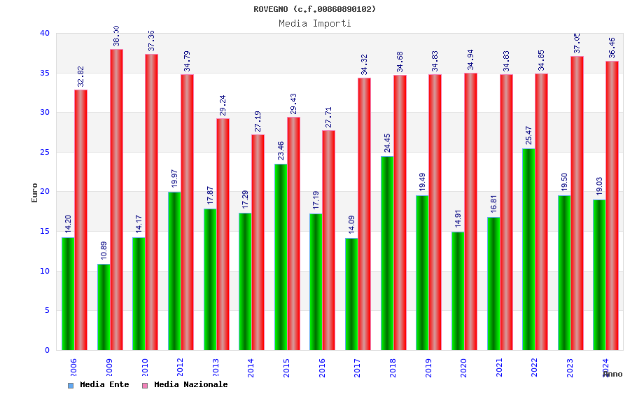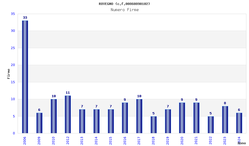 | Anno | Firme | Importi | Media | Naz. | Reg. | Prov. | Comu. |