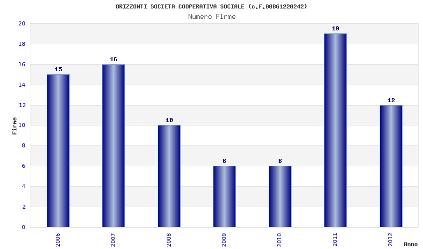| Anno | Firme | Importi | Media | Naz. | Reg. | Prov. | Comu. |