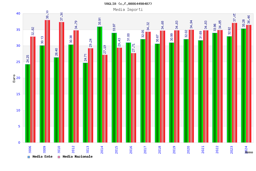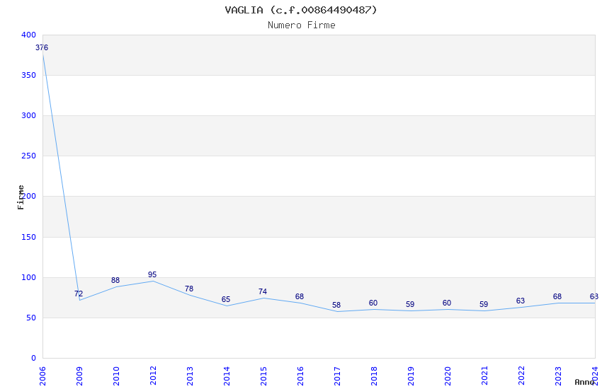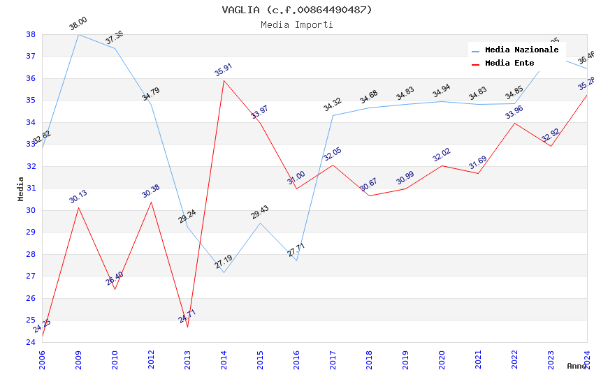 | Anno | Firme | Importi | Media | Naz. | Reg. | Prov. | Comu. |