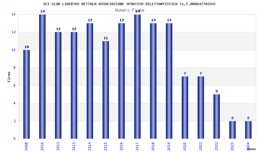 | 2014 | 13 | 562,76 | 43,29 | 37.517 | 3.367 | 254 | 2 |