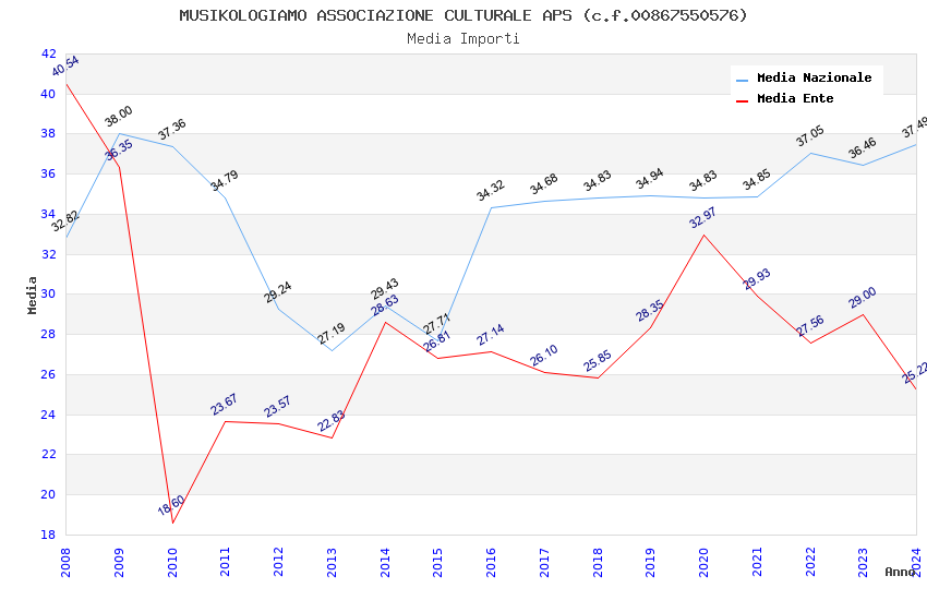 | Anno | Firme | Importi | Media | Naz. | Reg. | Prov. | Comu. |