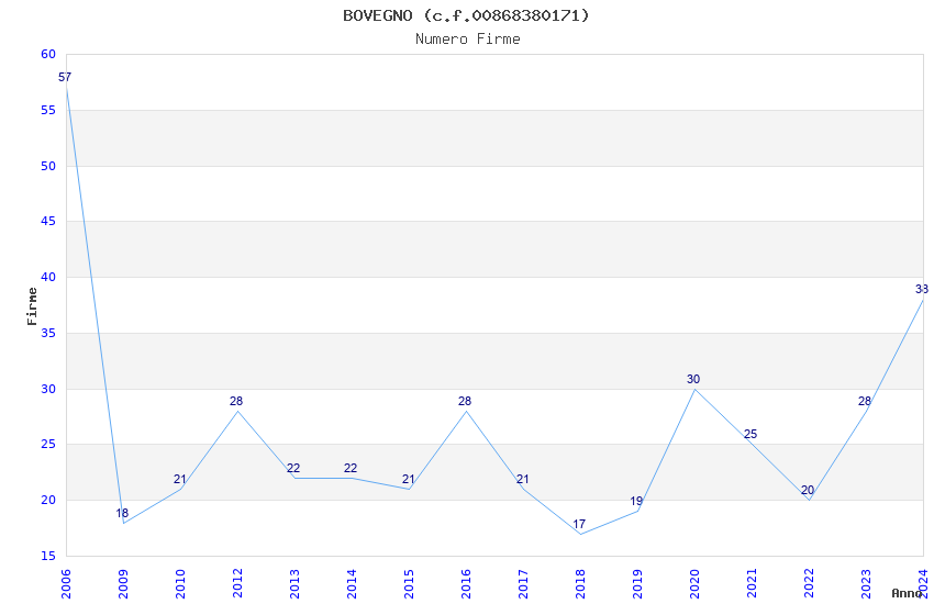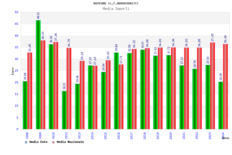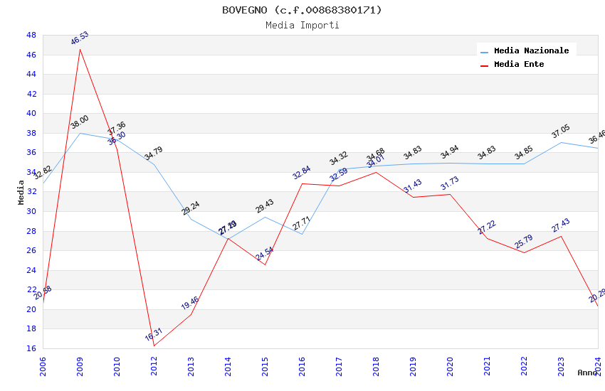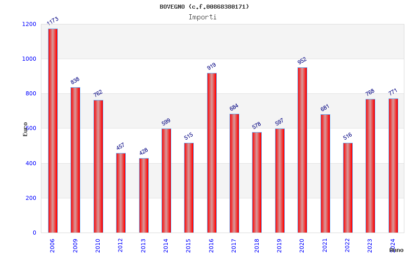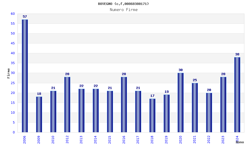 | Anno | Firme | Importi | Media | Naz. | Reg. | Prov. | Comu. |