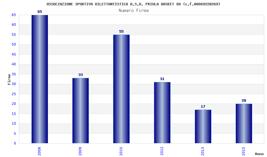 | Anno | Firme | Importi | Media | Naz. | Reg. | Prov. | Comu. |