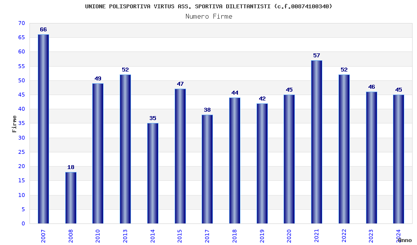 | Anno | Firme | Importi | Media | Naz. | Reg. | Prov. | Comu. |
