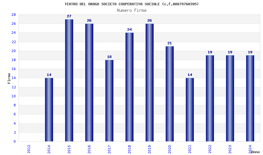 | Anno | Firme | Importi | Media | Naz. | Reg. | Prov. | Comu. |
