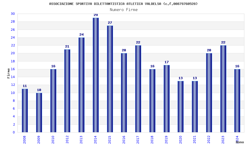 | 2014 | 29 | 907,86 | 31,31 | 32.246 | 2.067 | 211 | 5 |