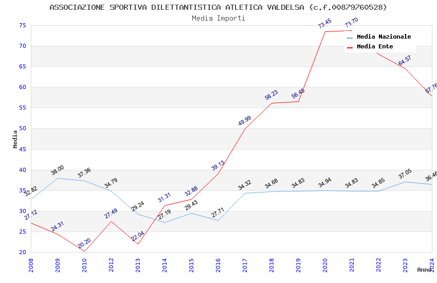 | Anno | Firme | Importi | Media | Naz. | Reg. | Prov. | Comu. |