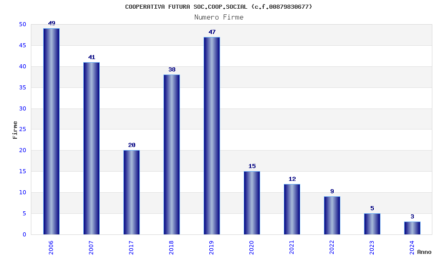 | Anno | Firme | Importi | Media | Naz. | Reg. | Prov. | Comu. |