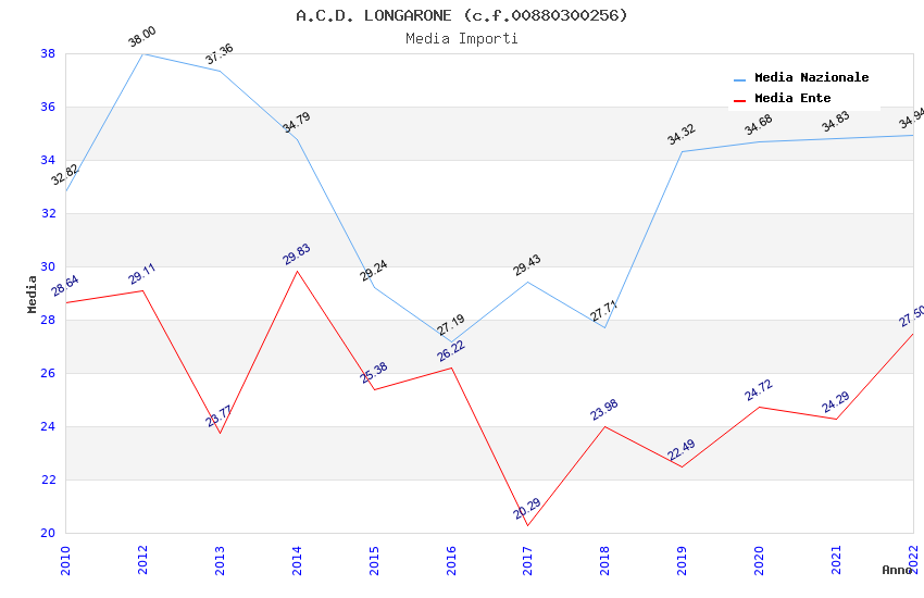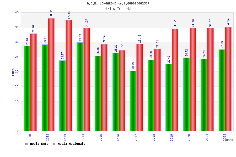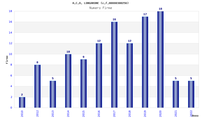 | Anno | Firme | Importi | Media | Naz. | Reg. | Prov. | Comu. |