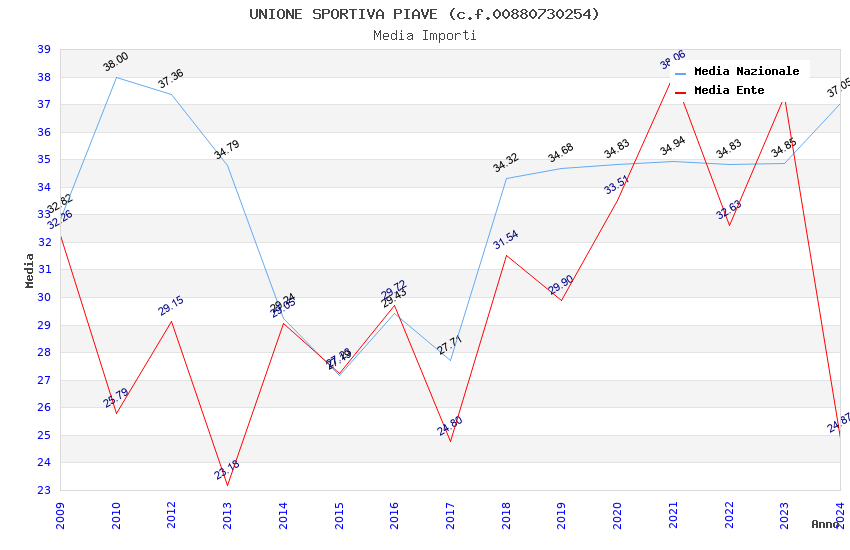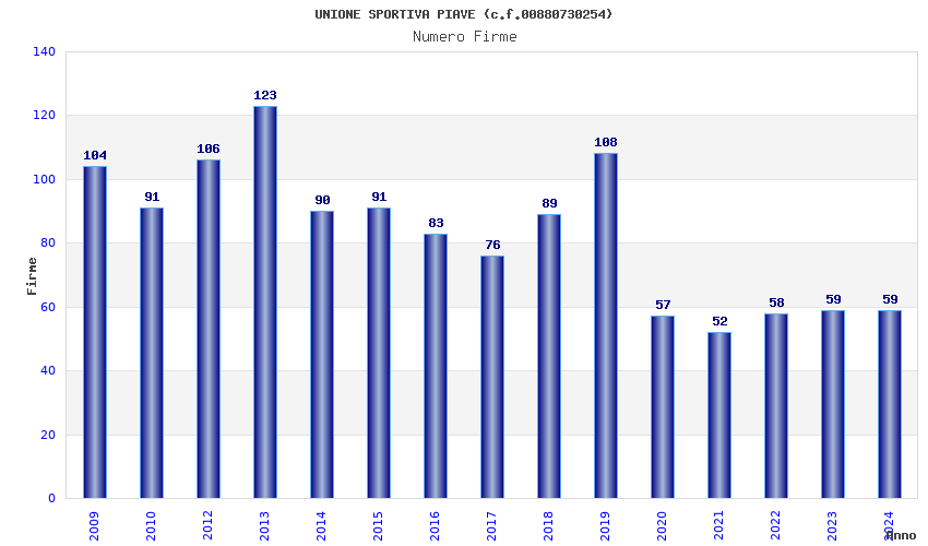 | Anno | Firme | Importi | Media | Naz. | Reg. | Prov. | Comu. |