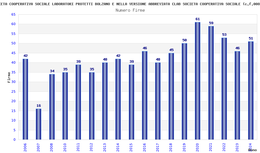 | 2020 | 61 | 2.614,22 | 42,86 | 20.140 | 524 | 278 | 108 |
