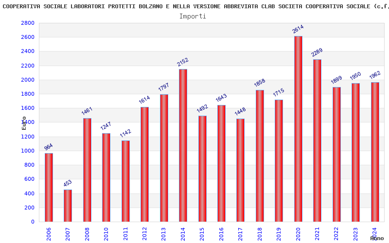 | Anno | Firme | Importi | Media | Naz. | Reg. | Prov. | Comu. |