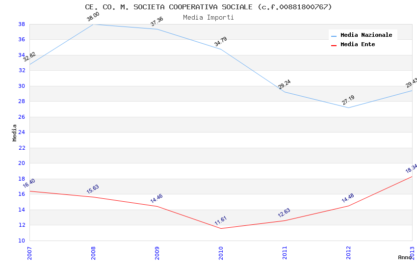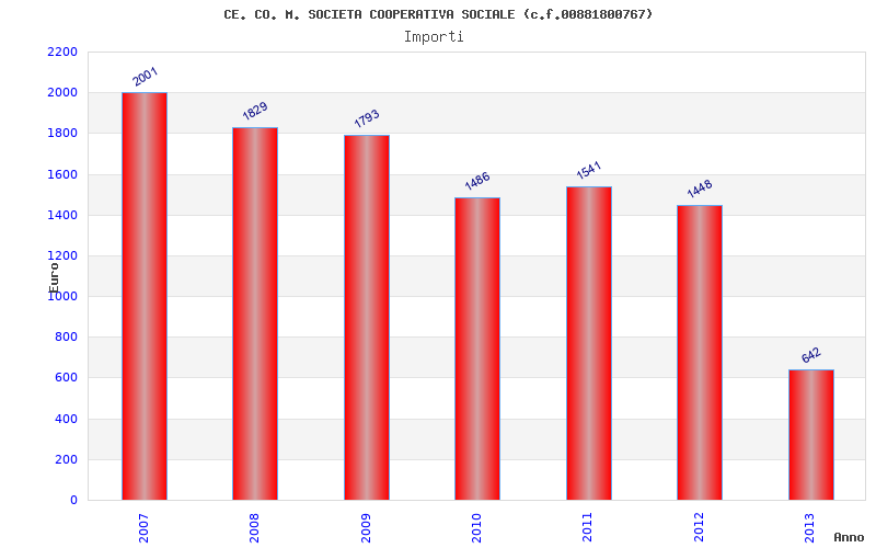 | Anno | Firme | Importi | Media | Naz. | Reg. | Prov. | Comu. |