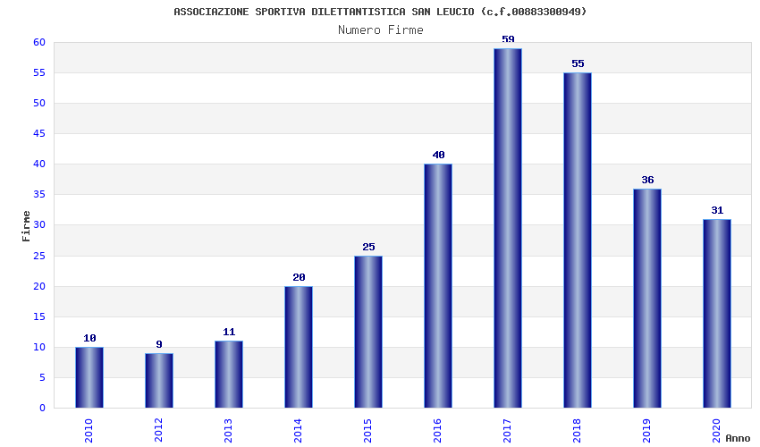 | Anno | Firme | Importi | Media | Naz. | Reg. | Prov. | Comu. |