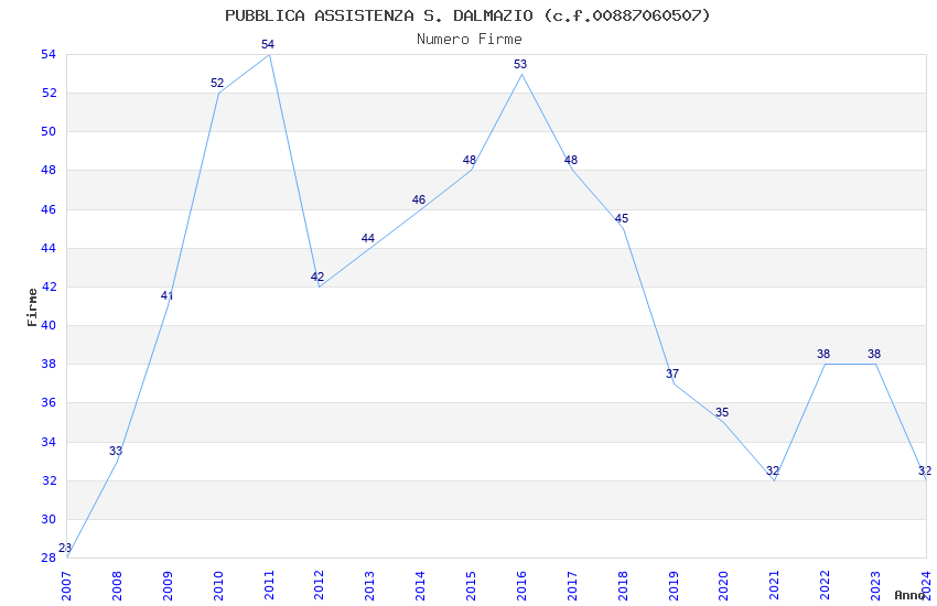 | 2016 | 53 | 1.230,75 | 23,22 | 29.917 | 1.856 | 218 | 5 |