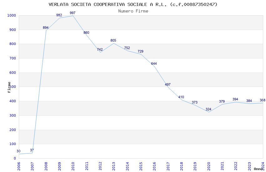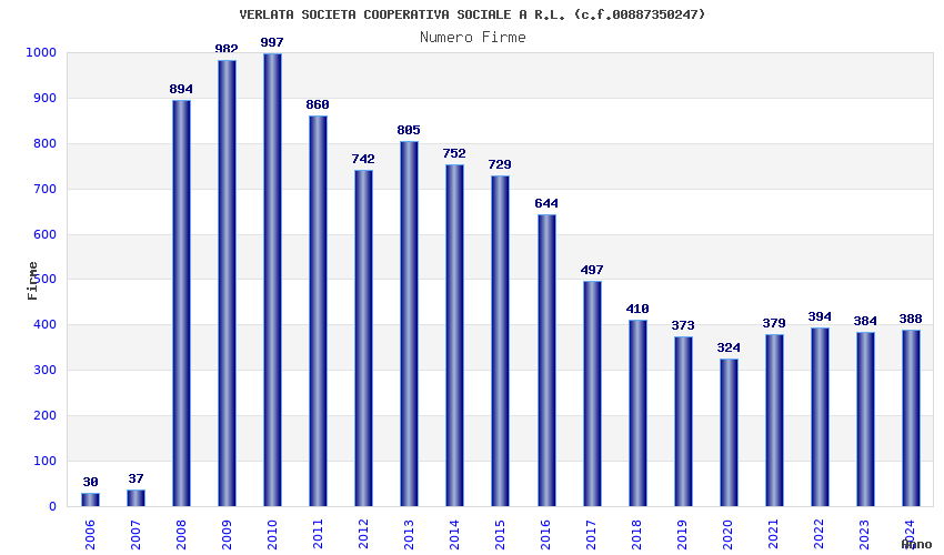 | Anno | Firme | Importi | Media | Naz. | Reg. | Prov. | Comu. |
