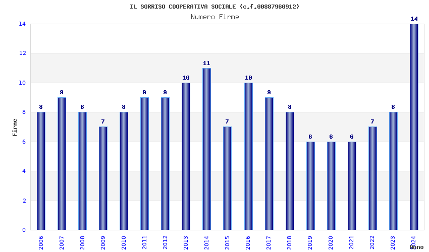 | Anno | Firme | Importi | Media | Naz. | Reg. | Prov. | Comu. |