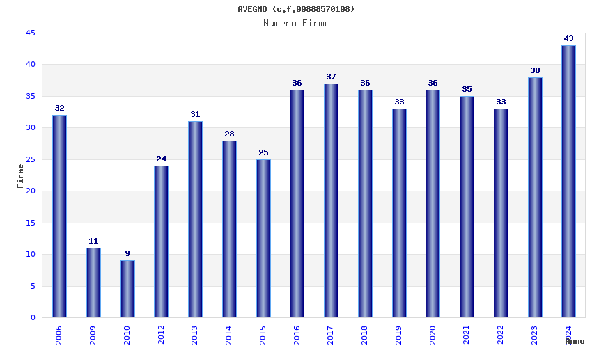 | 2024 | 43 | 1.325,81 | 30,83 | 31.903 | 782 | 472 | 1 |