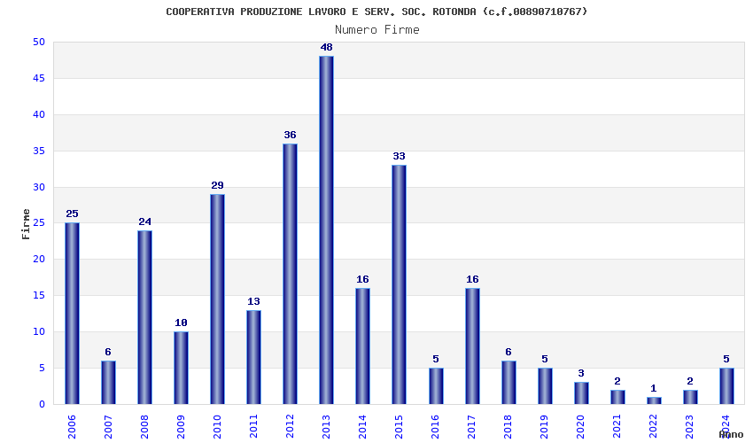 | Anno | Firme | Importi | Media | Naz. | Reg. | Prov. | Comu. |