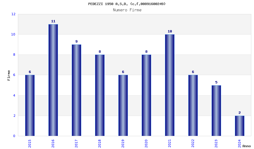 | Anno | Firme | Importi | Media | Naz. | Reg. | Prov. | Comu. |