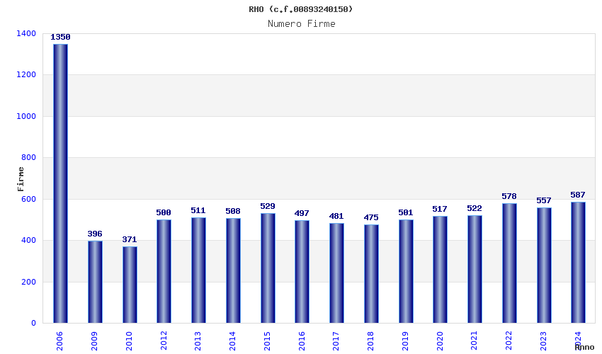 | Anno | Firme | Importi | Media | Naz. | Reg. | Prov. | Comu. |