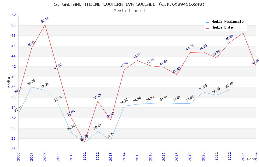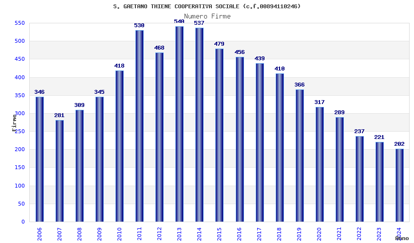 | Anno | Firme | Importi | Media | Naz. | Reg. | Prov. | Comu. |