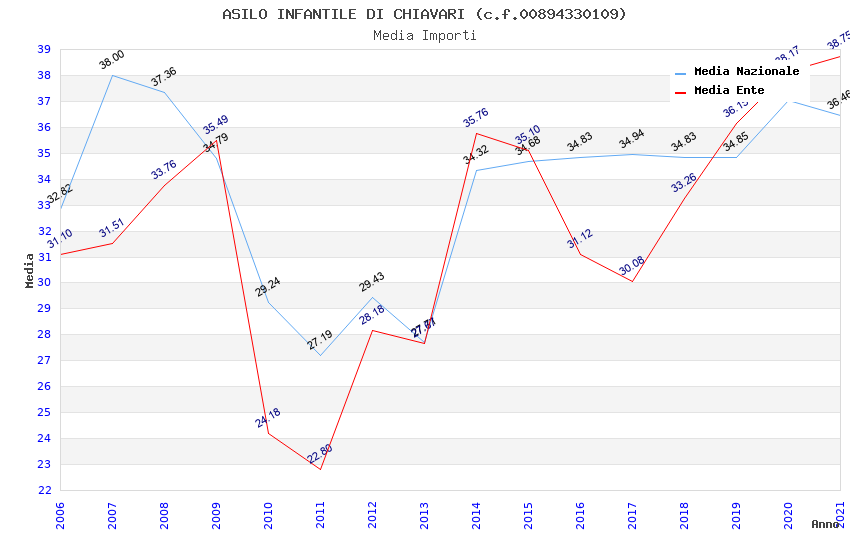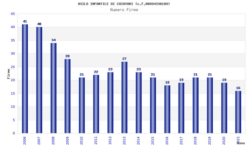 | Anno | Firme | Importi | Media | Naz. | Reg. | Prov. | Comu. |
