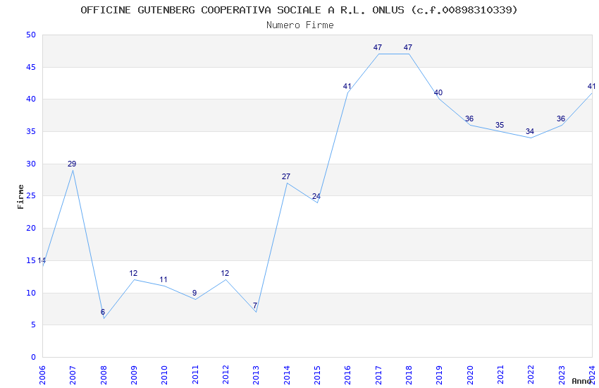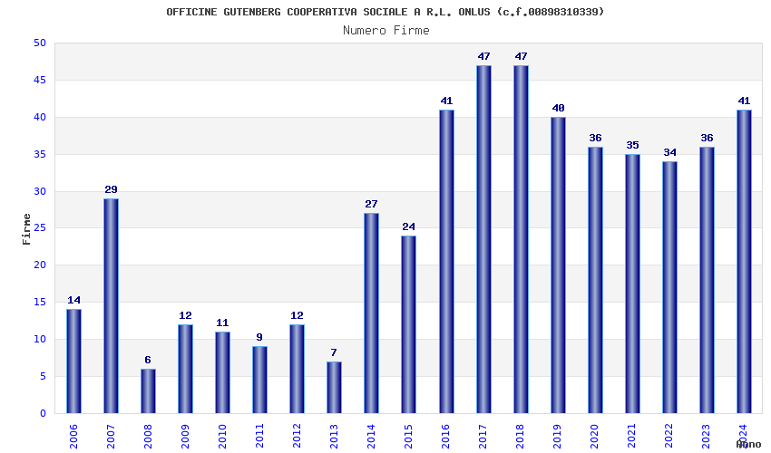| Anno | Firme | Importi | Media | Naz. | Reg. | Prov. | Comu. |