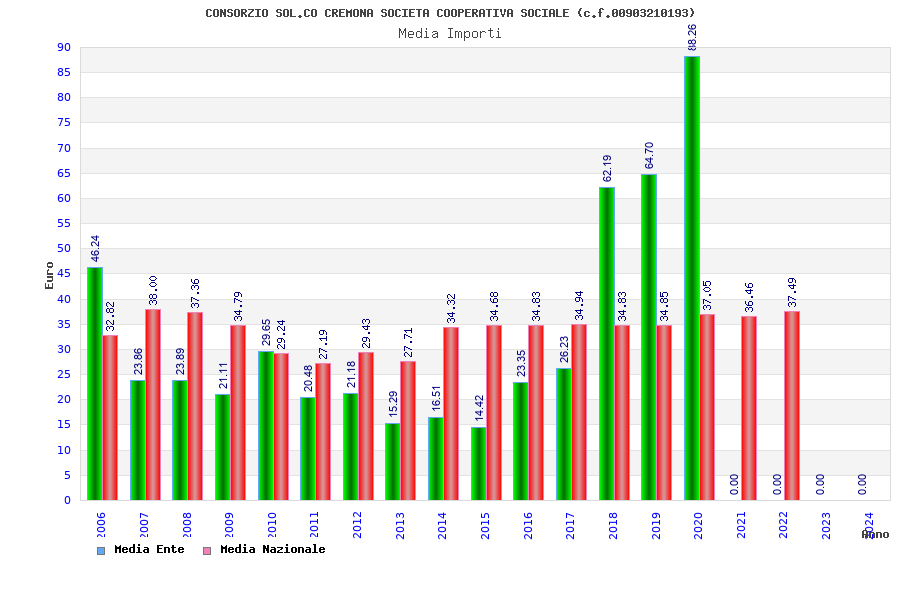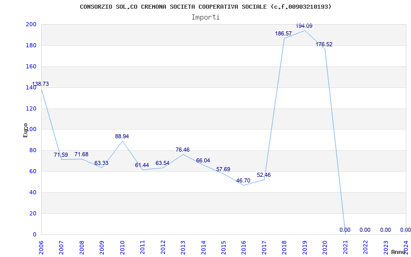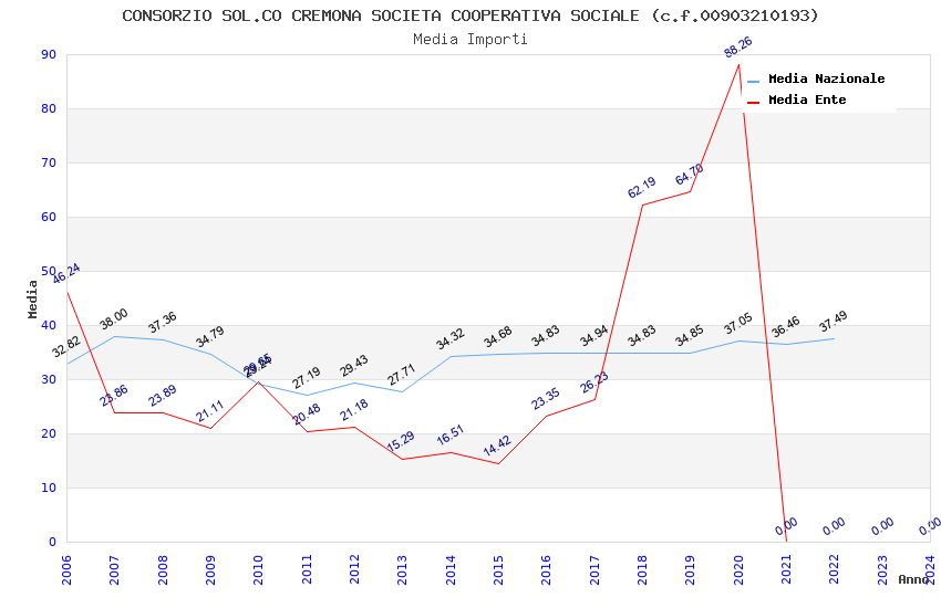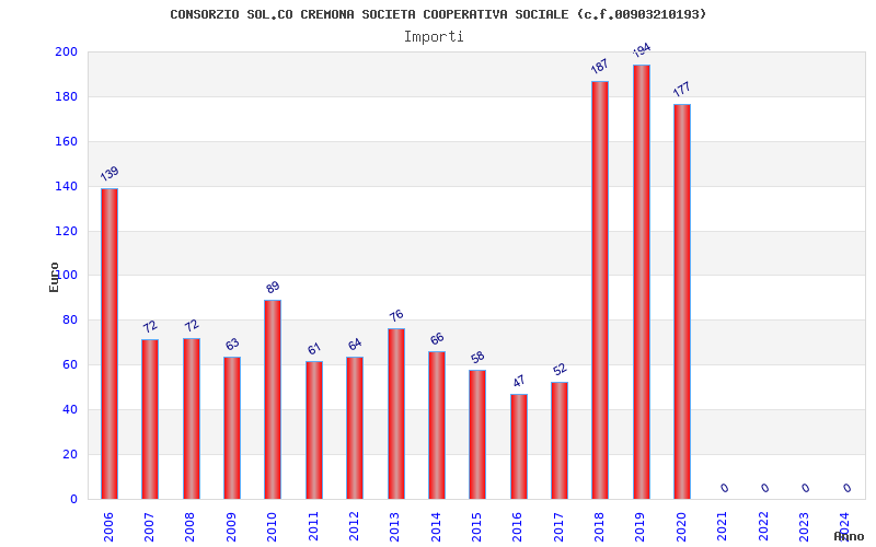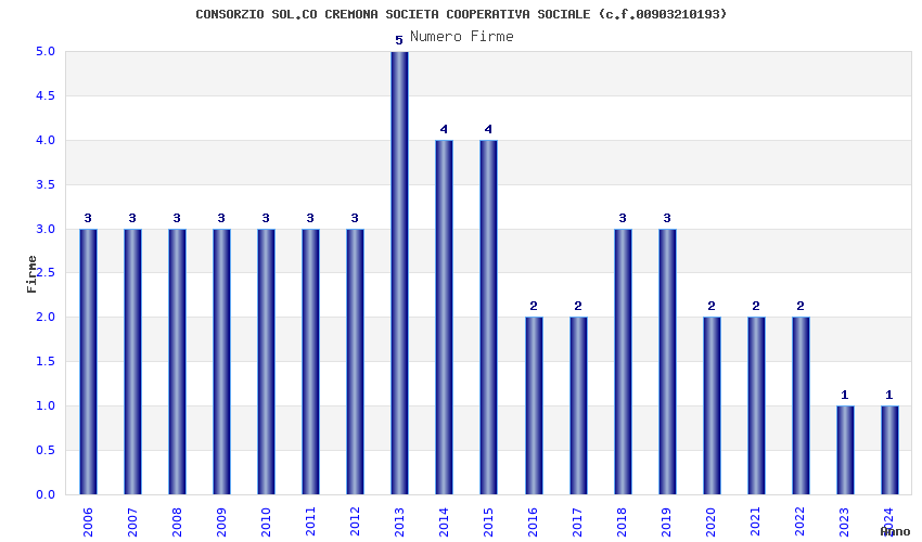 | Anno | Firme | Importi | Media | Naz. | Reg. | Prov. | Comu. |