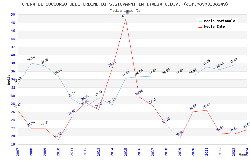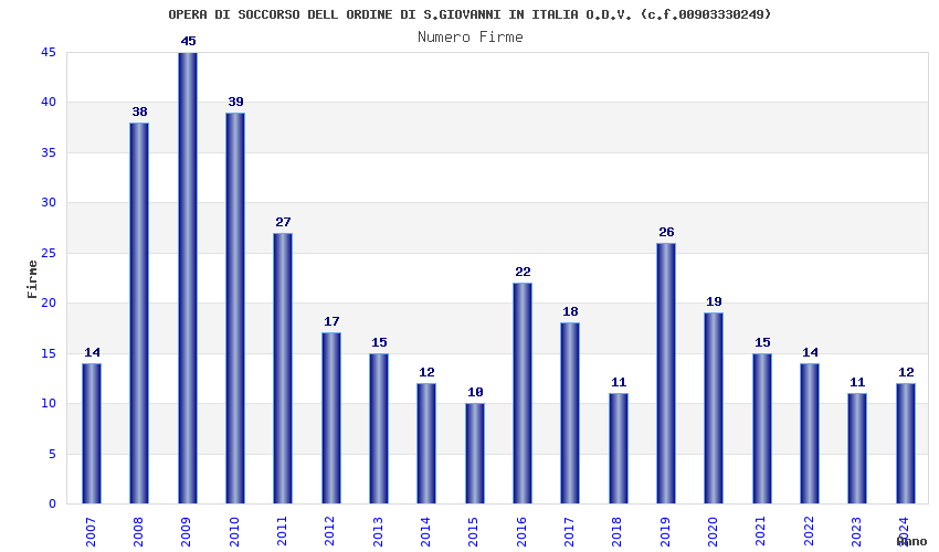 | Anno | Firme | Importi | Media | Naz. | Reg. | Prov. | Comu. |