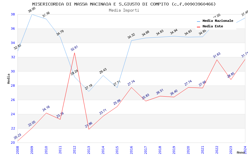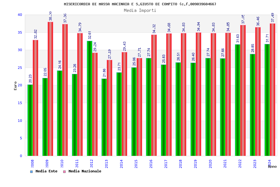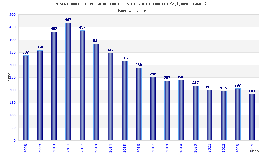 | Anno | Firme | Importi | Media | Naz. | Reg. | Prov. | Comu. |
