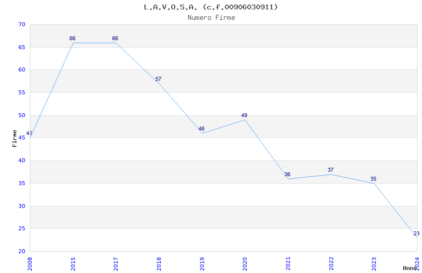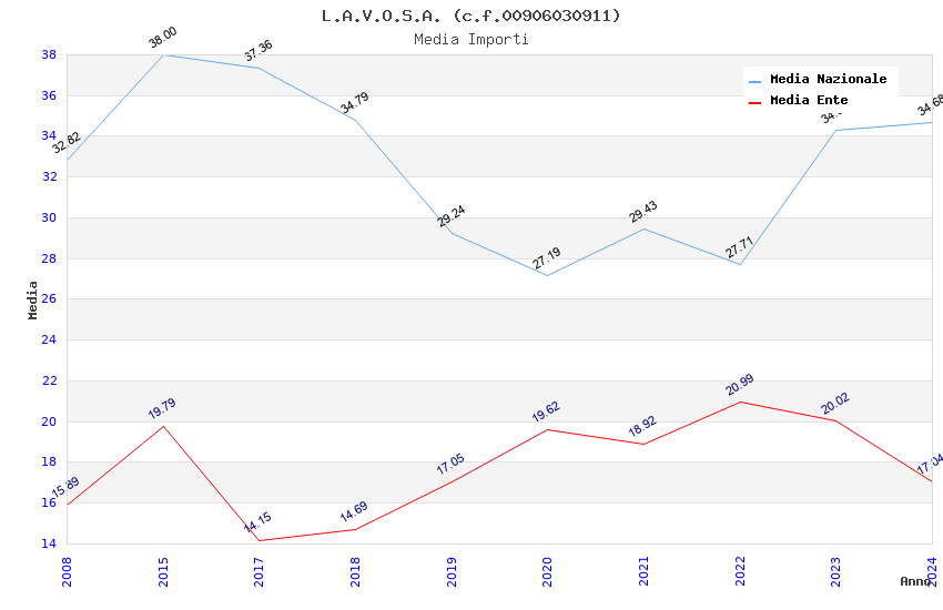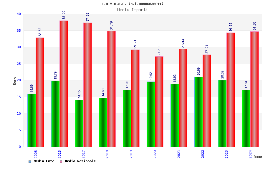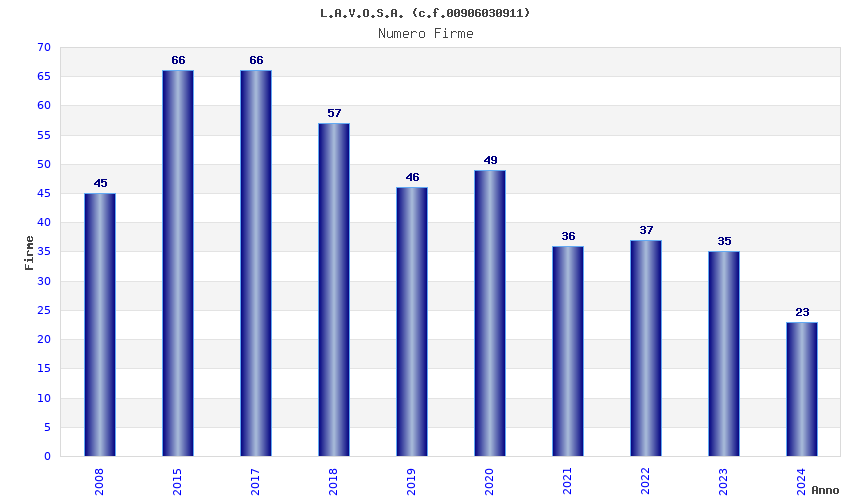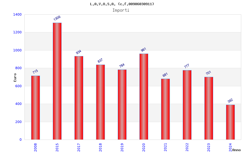| Anno | Firme | Importi | Media | Naz. | Reg. | Prov. | Comu. |