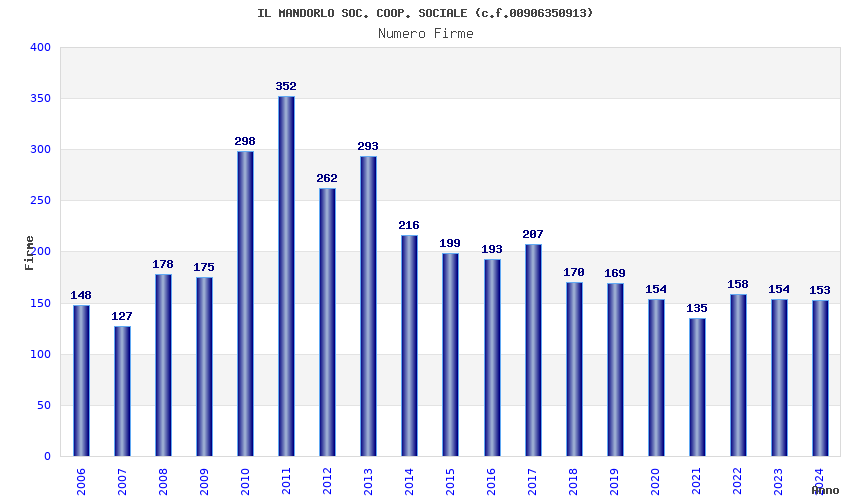 | Anno | Firme | Importi | Media | Naz. | Reg. | Prov. | Comu. |