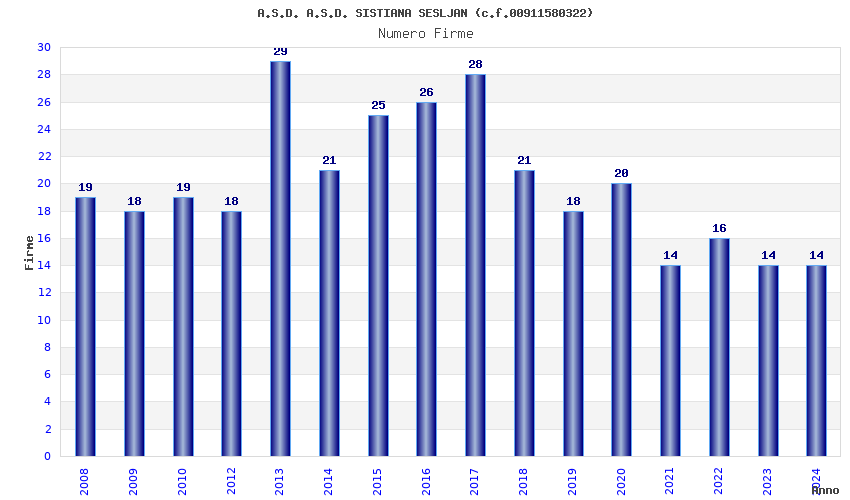| Anno | Firme | Importi | Media | Naz. | Reg. | Prov. | Comu. |
