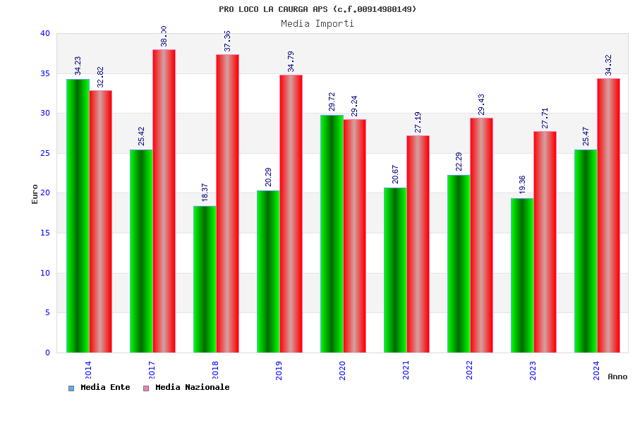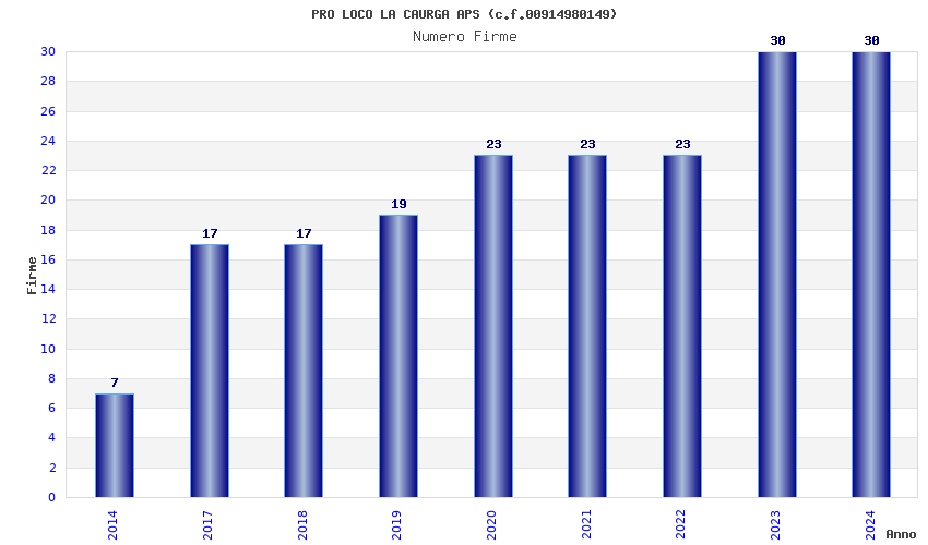 | Anno | Firme | Importi | Media | Naz. | Reg. | Prov. | Comu. |