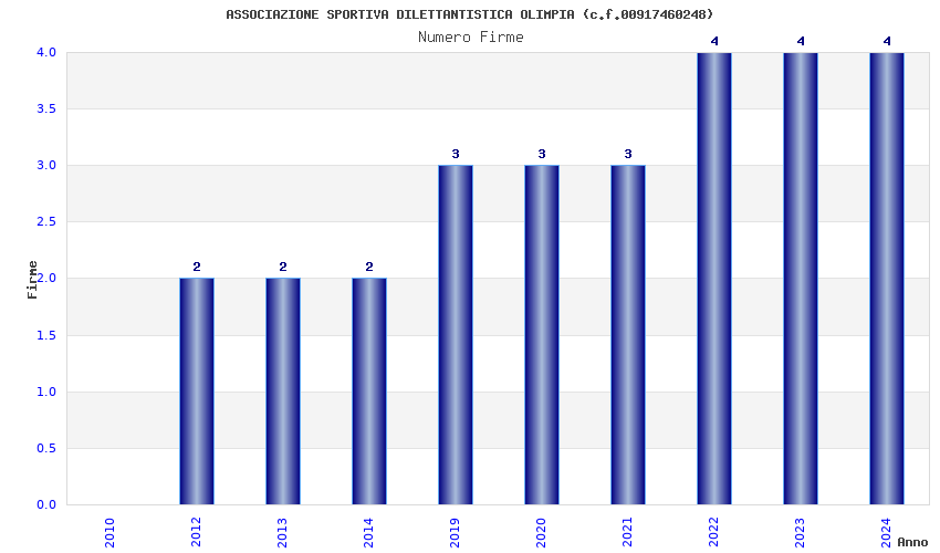 | Anno | Firme | Importi | Media | Naz. | Reg. | Prov. | Comu. |