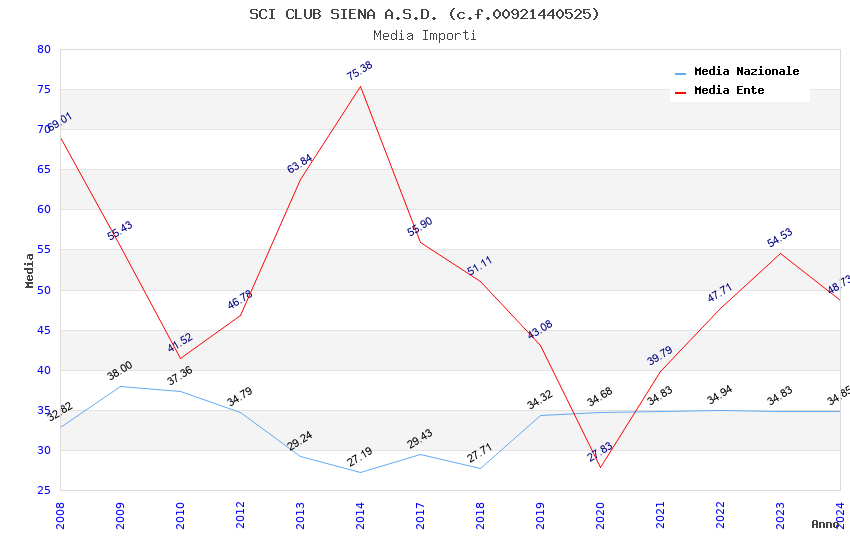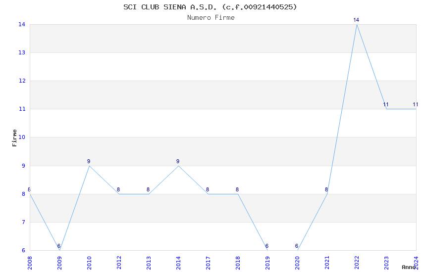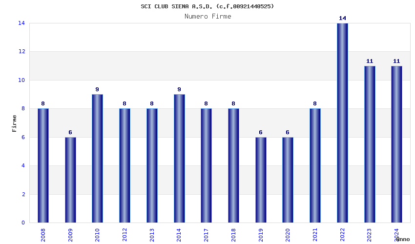 | Anno | Firme | Importi | Media | Naz. | Reg. | Prov. | Comu. |
