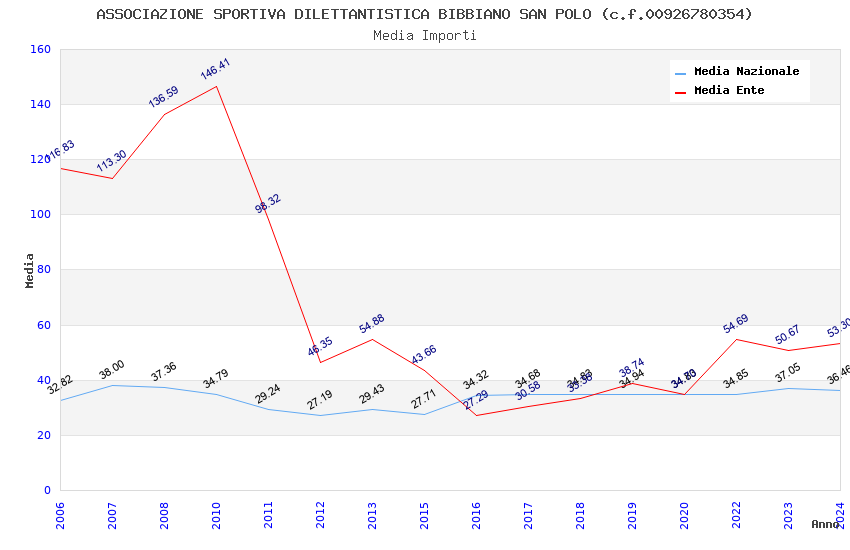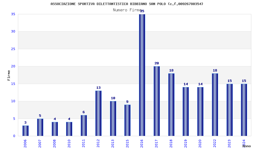 | Anno | Firme | Importi | Media | Naz. | Reg. | Prov. | Comu. |