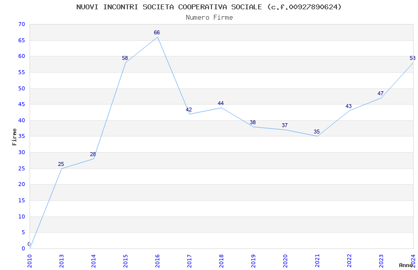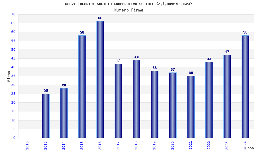 | Anno | Firme | Importi | Media | Naz. | Reg. | Prov. | Comu. |