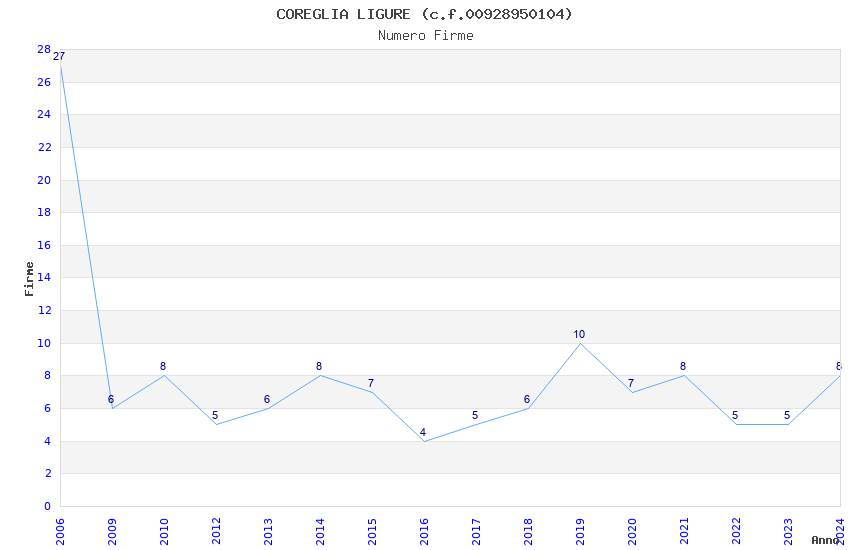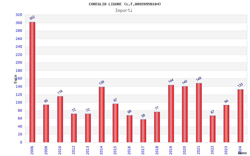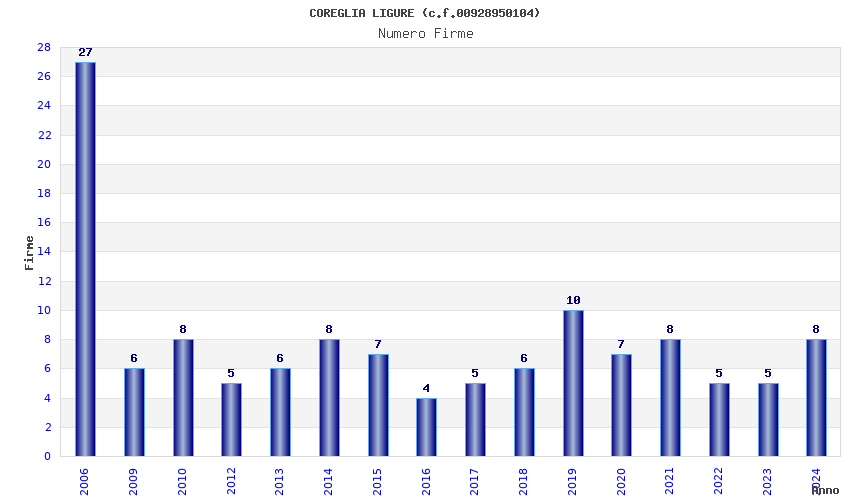 | Anno | Firme | Importi | Media | Naz. | Reg. | Prov. | Comu. |