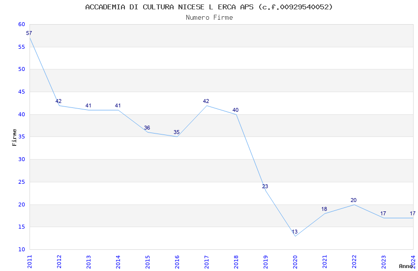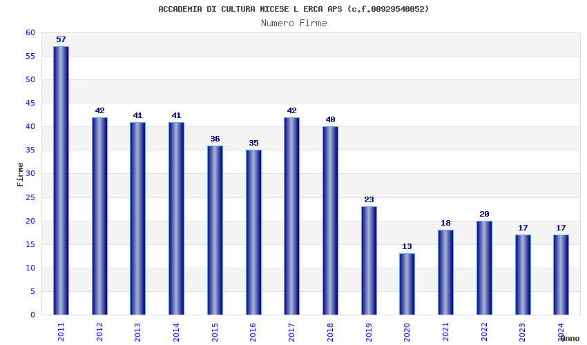 | 2017 | 42 | 2.231,27 | 53,13 | 21.781 | 1.711 | 59 | 6 |