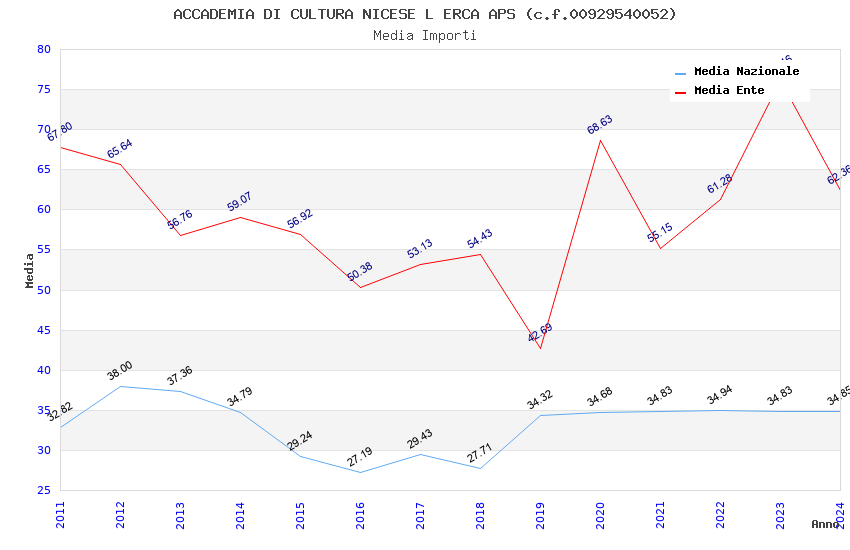 | Anno | Firme | Importi | Media | Naz. | Reg. | Prov. | Comu. |