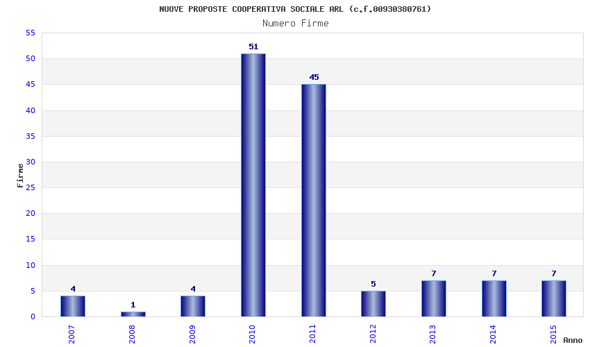 | Anno | Firme | Importi | Media | Naz. | Reg. | Prov. | Comu. |