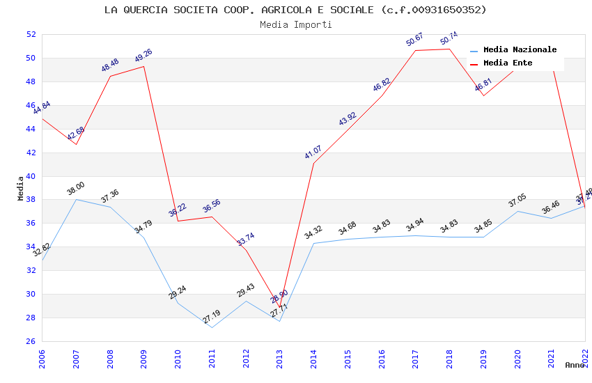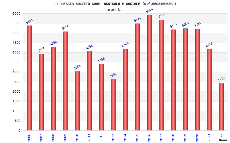 | Anno | Firme | Importi | Media | Naz. | Reg. | Prov. | Comu. |