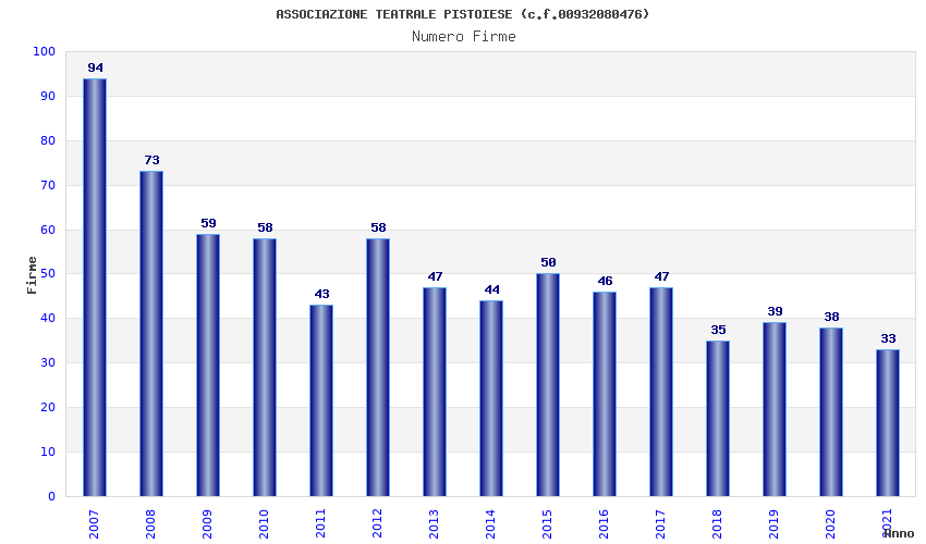 | Anno | Firme | Importi | Media | Naz. | Reg. | Prov. | Comu. |