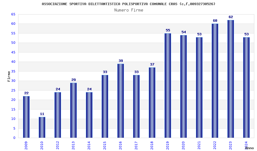 | 2024 | 53 | 1.764,10 | 33,28 | 26.368 | 1.590 | 160 | 5 |