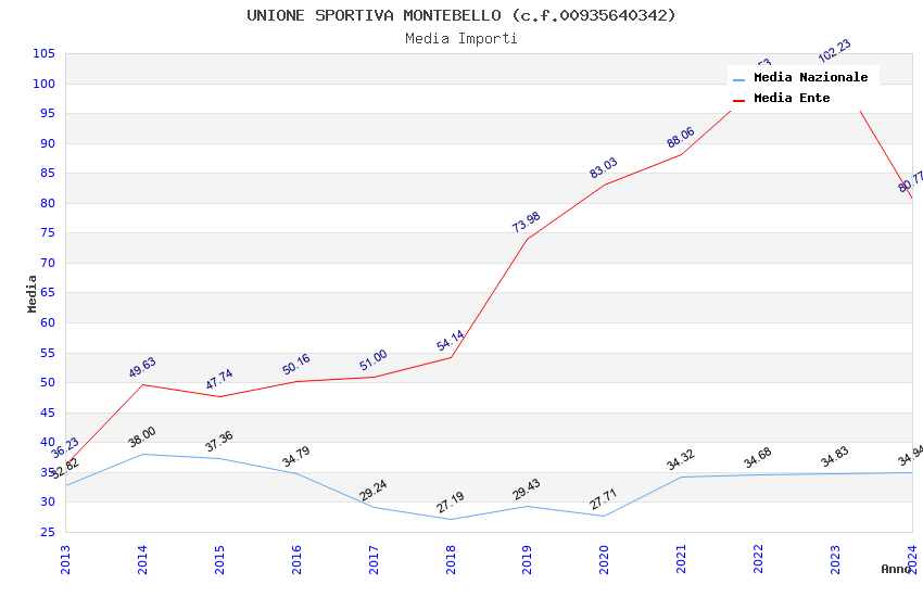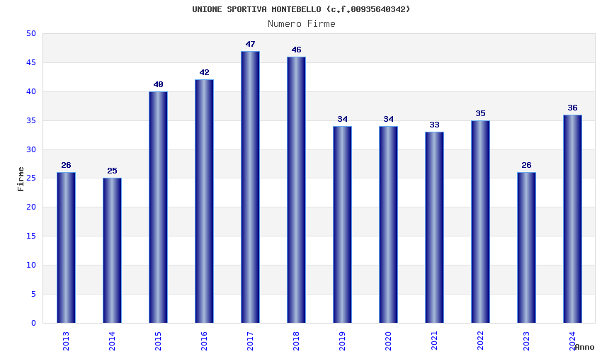| Anno | Firme | Importi | Media | Naz. | Reg. | Prov. | Comu. |