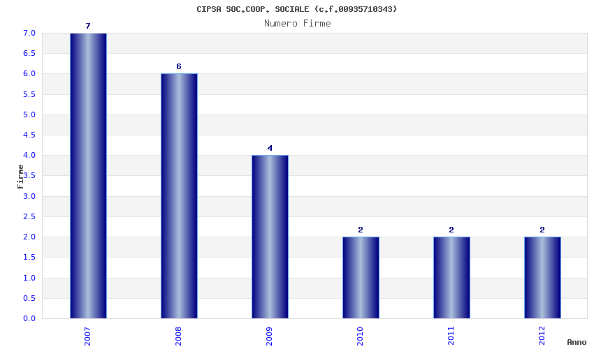 | Anno | Firme | Importi | Media | Naz. | Reg. | Prov. | Comu. |