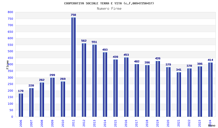Anno Firme Importi Media Naz. Reg. Prov. Comu.